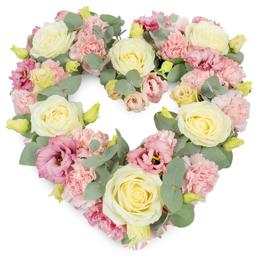 Share your heartfelt emotions with our radiant open heart bouquet. This elegant arrangement features white roses, pink carnations, pink lisianthus, and eucalyptus, each hand-selected to ensure exceptional freshness and beauty.